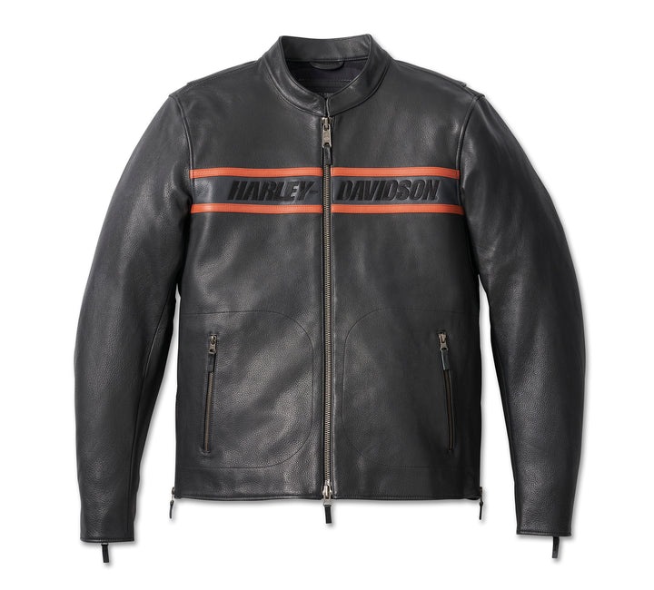 Harley-Davidson Men's Black Leather Motorcycle Jacket - Orange & Grey Racing Stripe