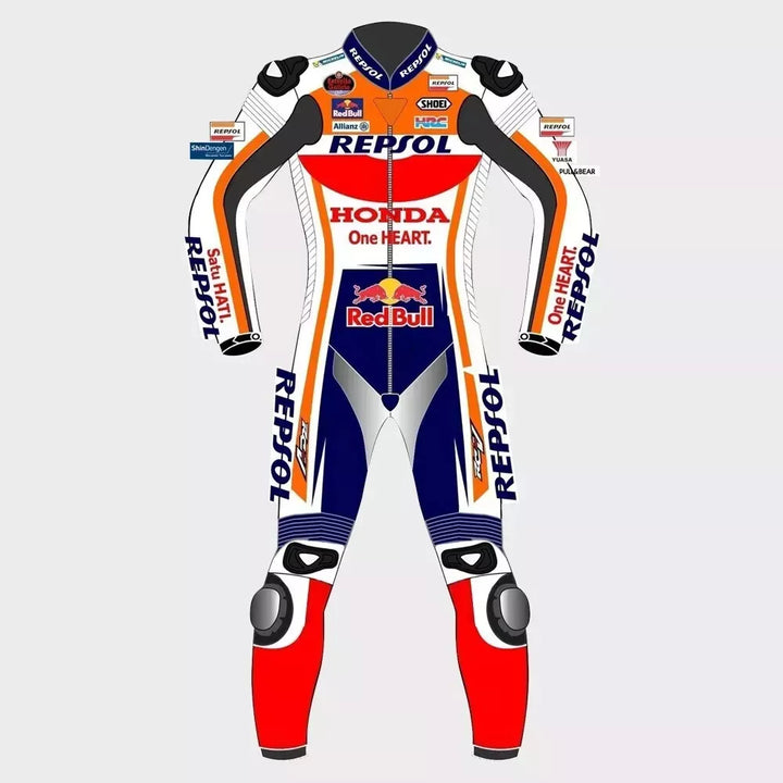 Honda Repsol Racing Motorcycle Red Bull 1 Piece Full Body Genuine Cowhide Leather Biker Suit